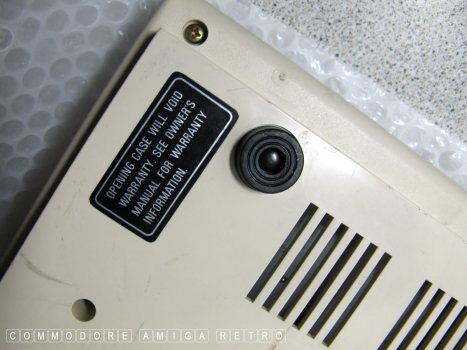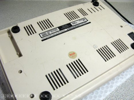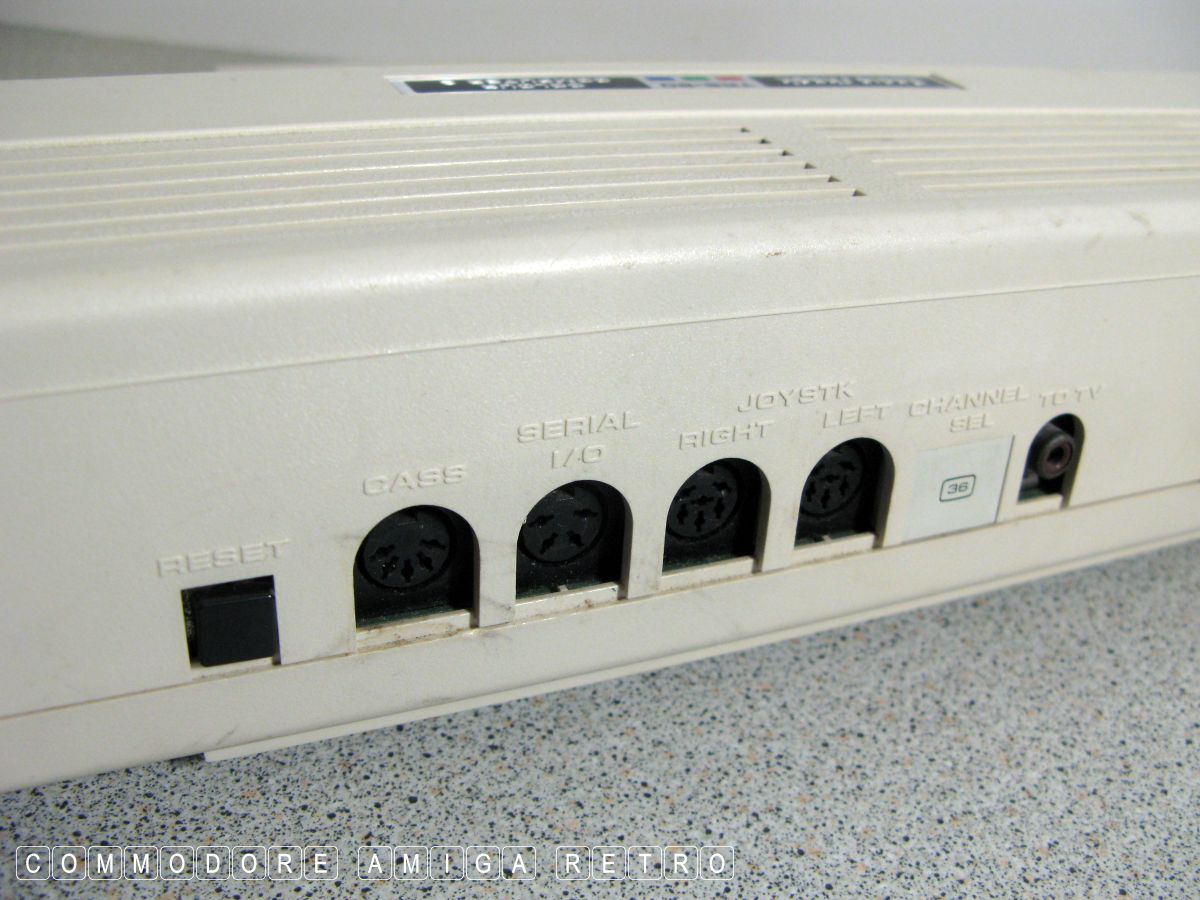 The computer has a cartridge slot to one side.