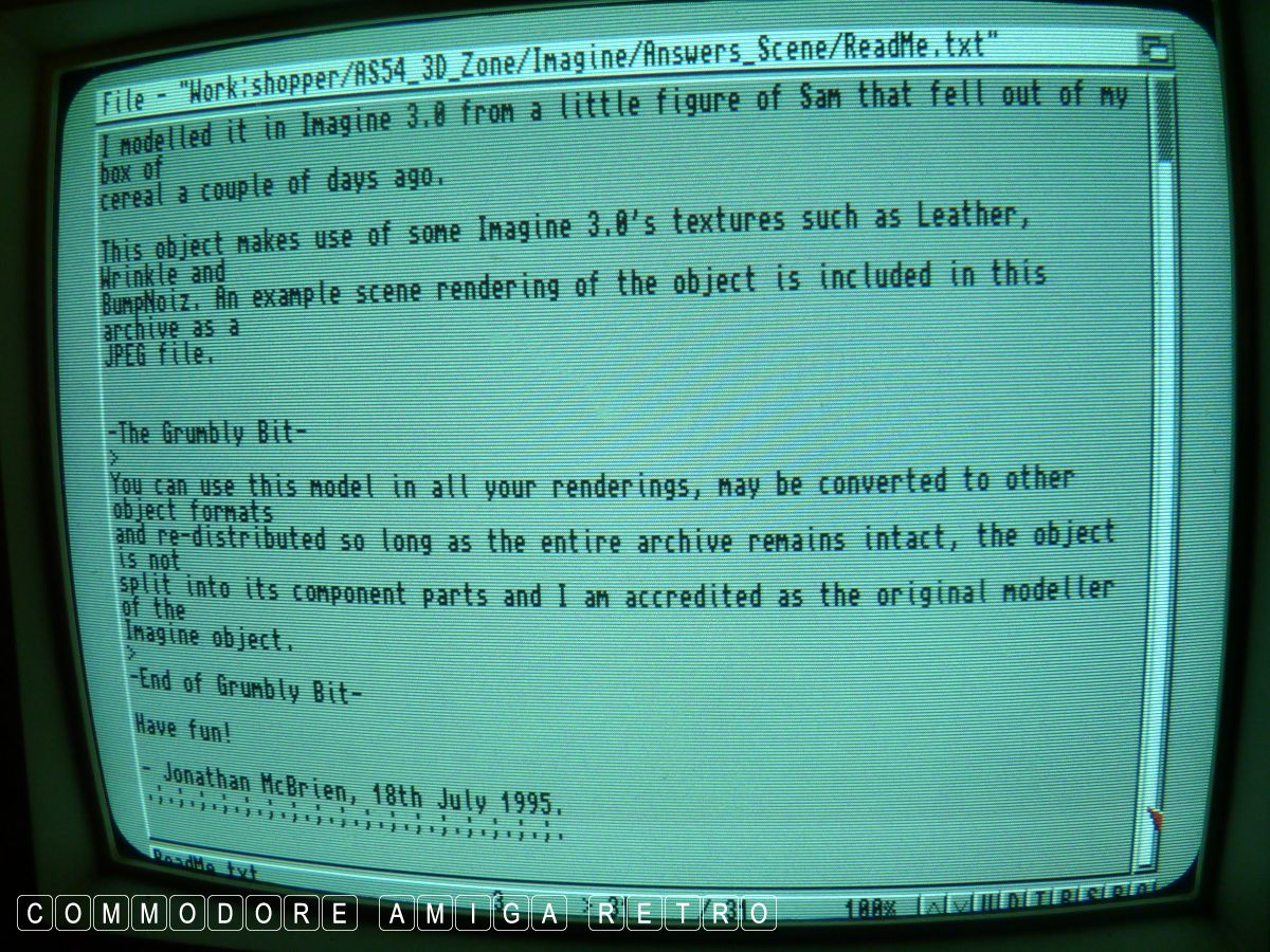 object created using Imagine 3 on an Amiga 1200, and featured in
