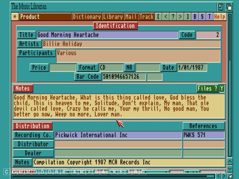The Music Librarian is actually an information management system