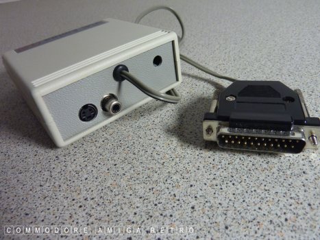 the Amiga and connect the unit also to the disk drive for power.