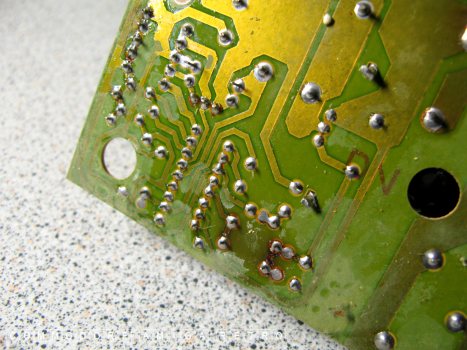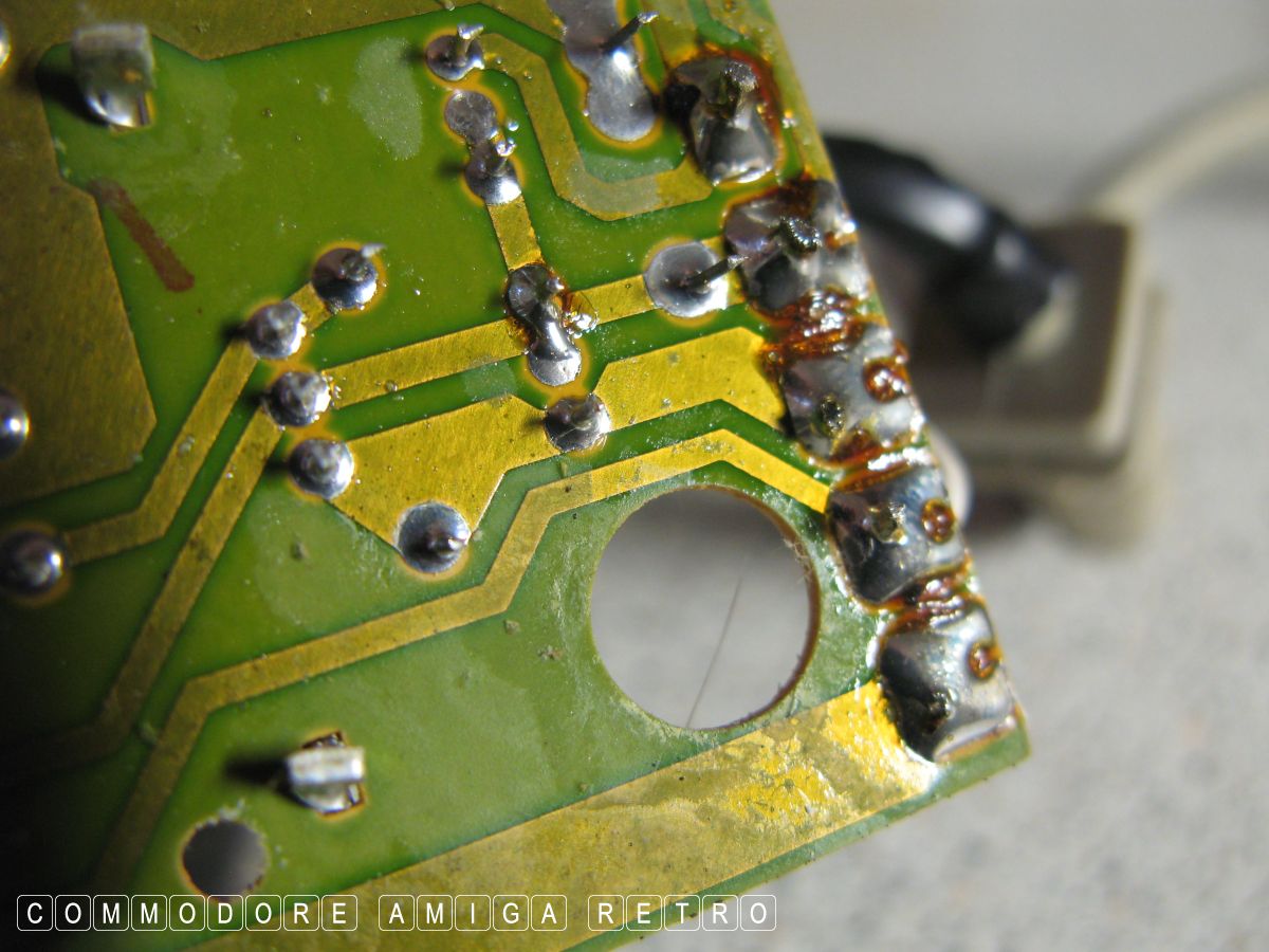 power connectors and tracks appeared brown and possibly subjected