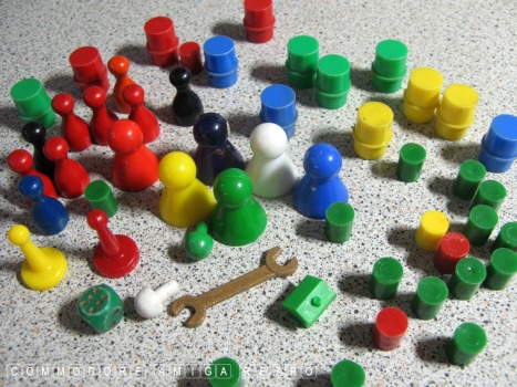 I have this tin full of game pieces such as Cluedo, Risk, Frustration,