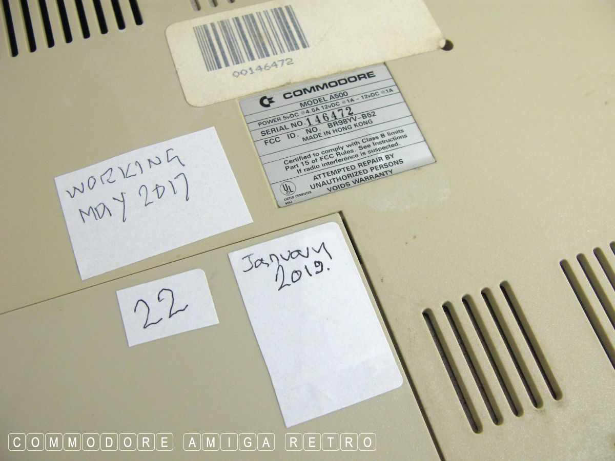 Amiga 500 warranty seal intact.