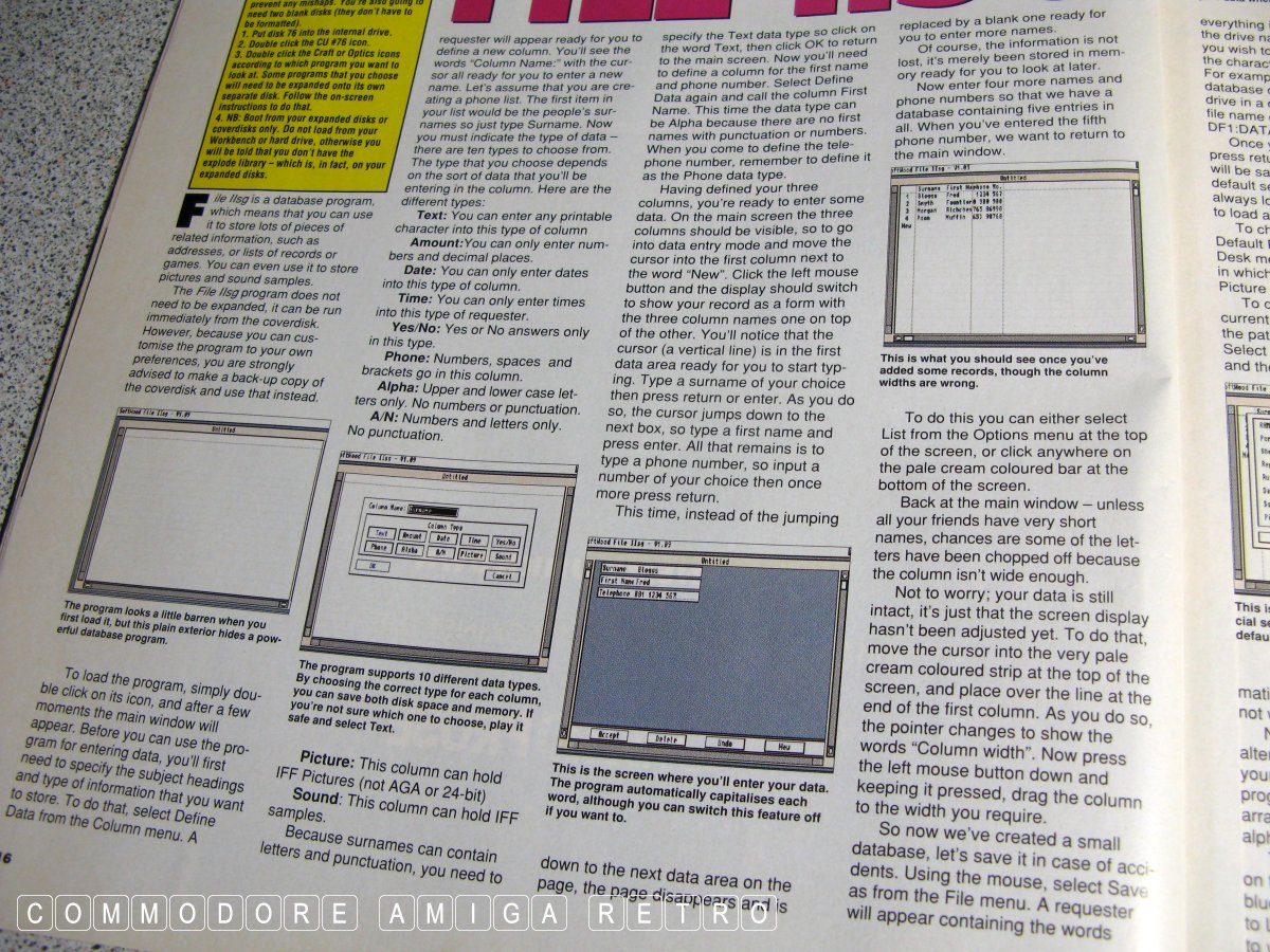 I show here the CUAmiga magazine that has the Softwood FileII guide