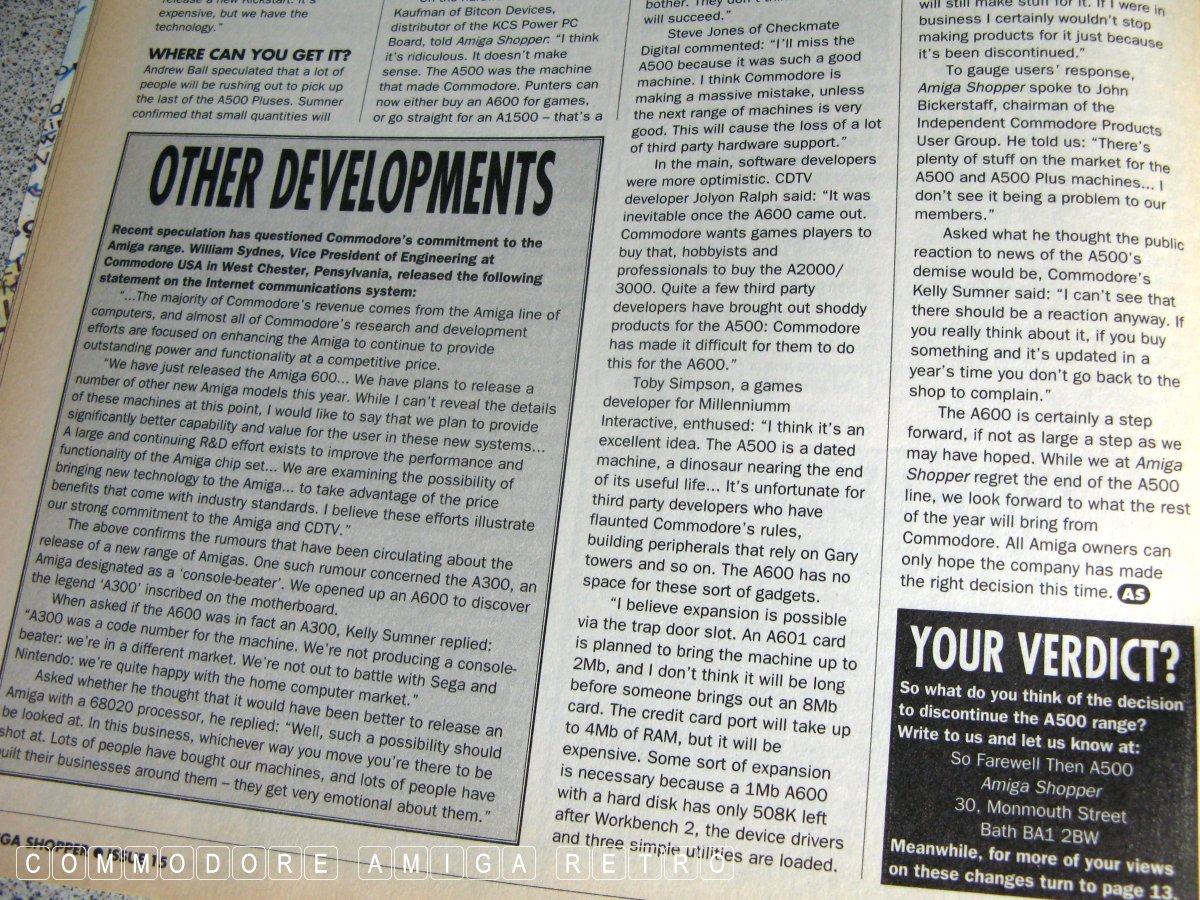 Amiga 500 was suddenly to be discontinued. What is worse, was the