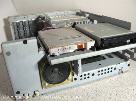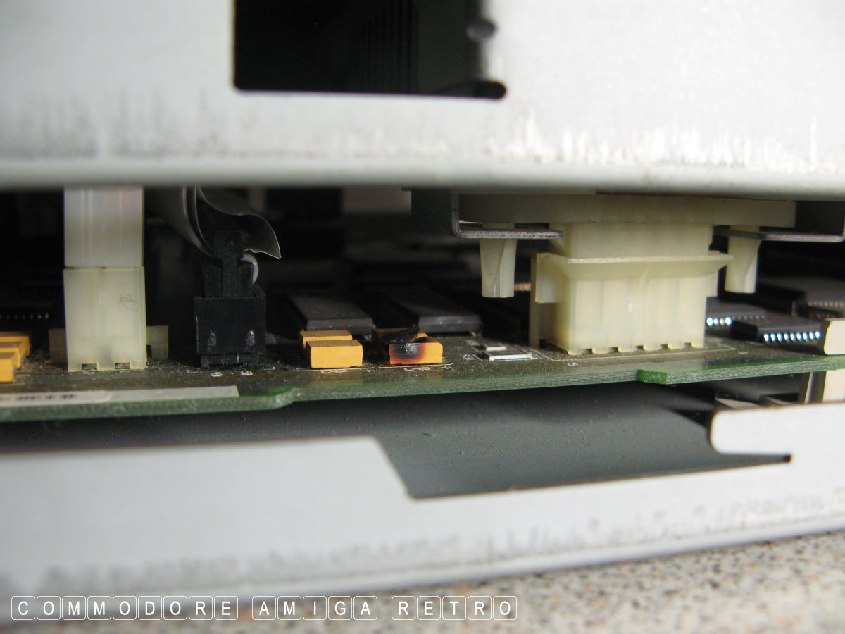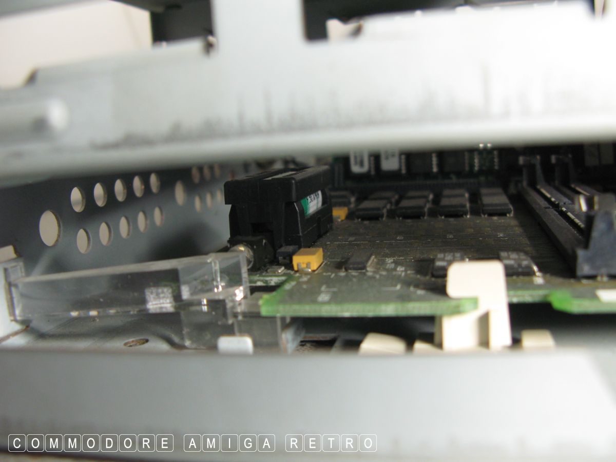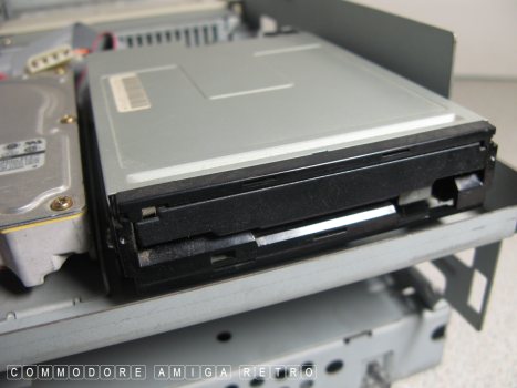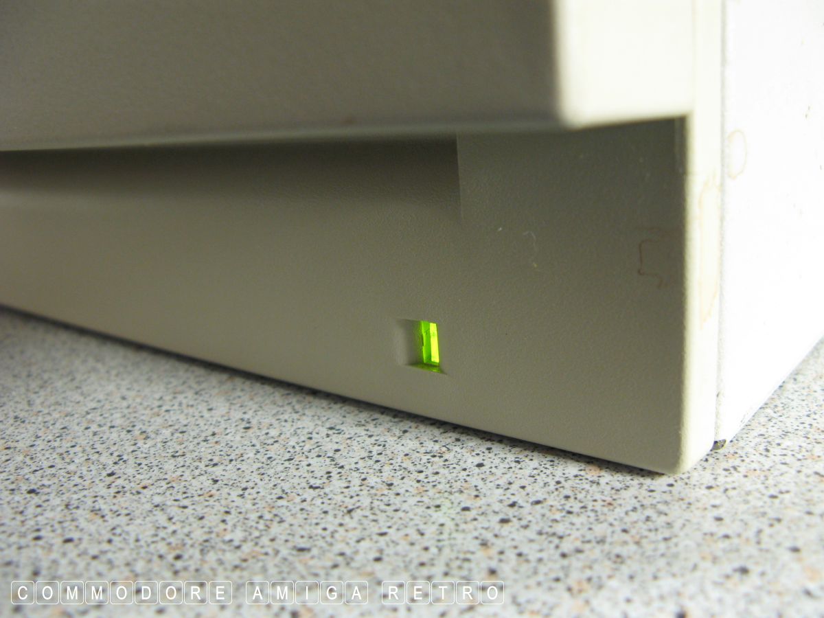 yellow viewed from the side below the floppy. The computer still
