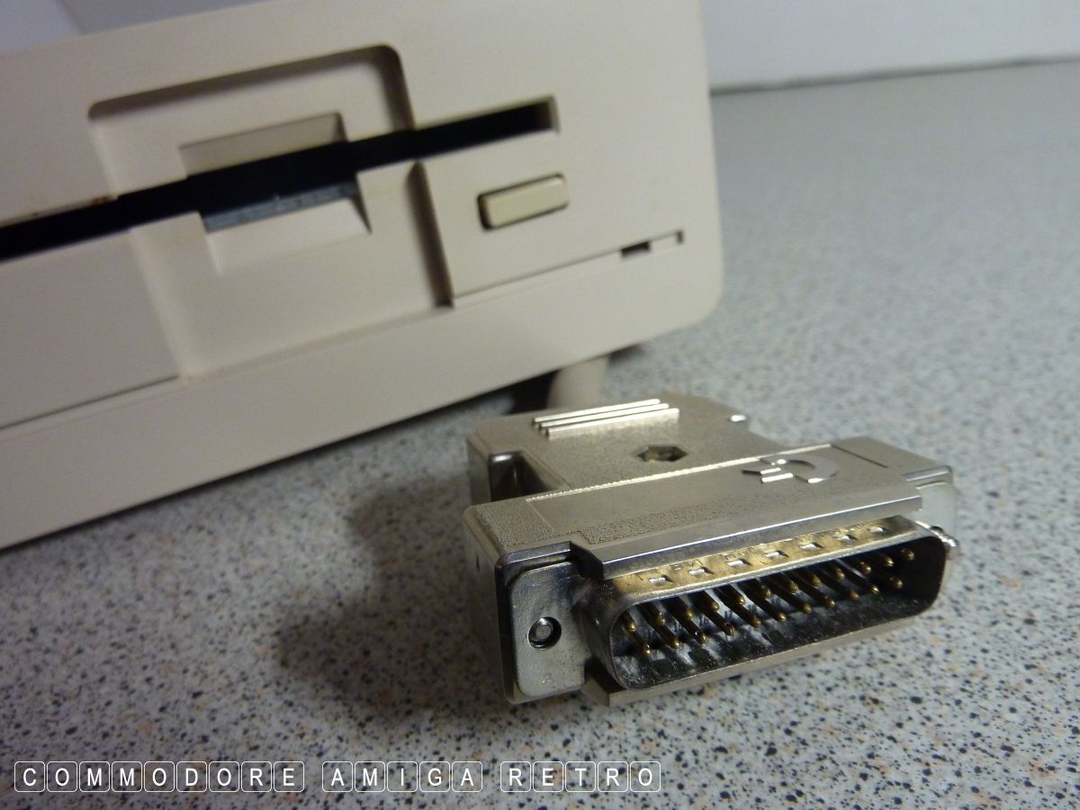 Amiga 1000 giving external drive capabilities. It has a pass through