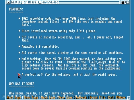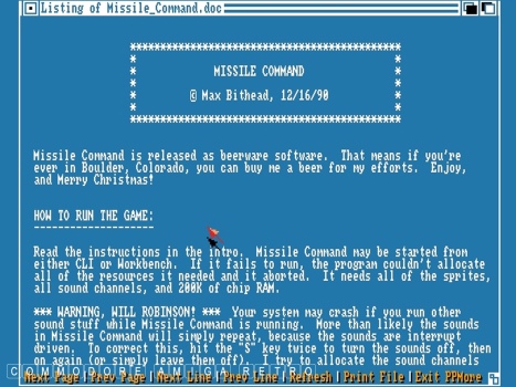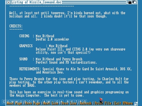 Amiga. This version of Missile Command was created by Max Bithead of