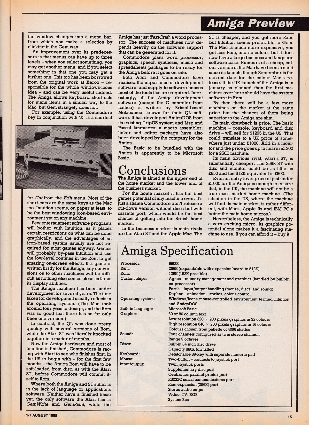 featuring the launch of the Amiga. The first for the initial