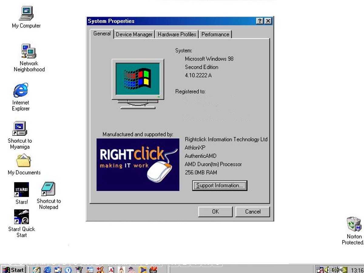 Microsoft Windows 98 Athlon running on an