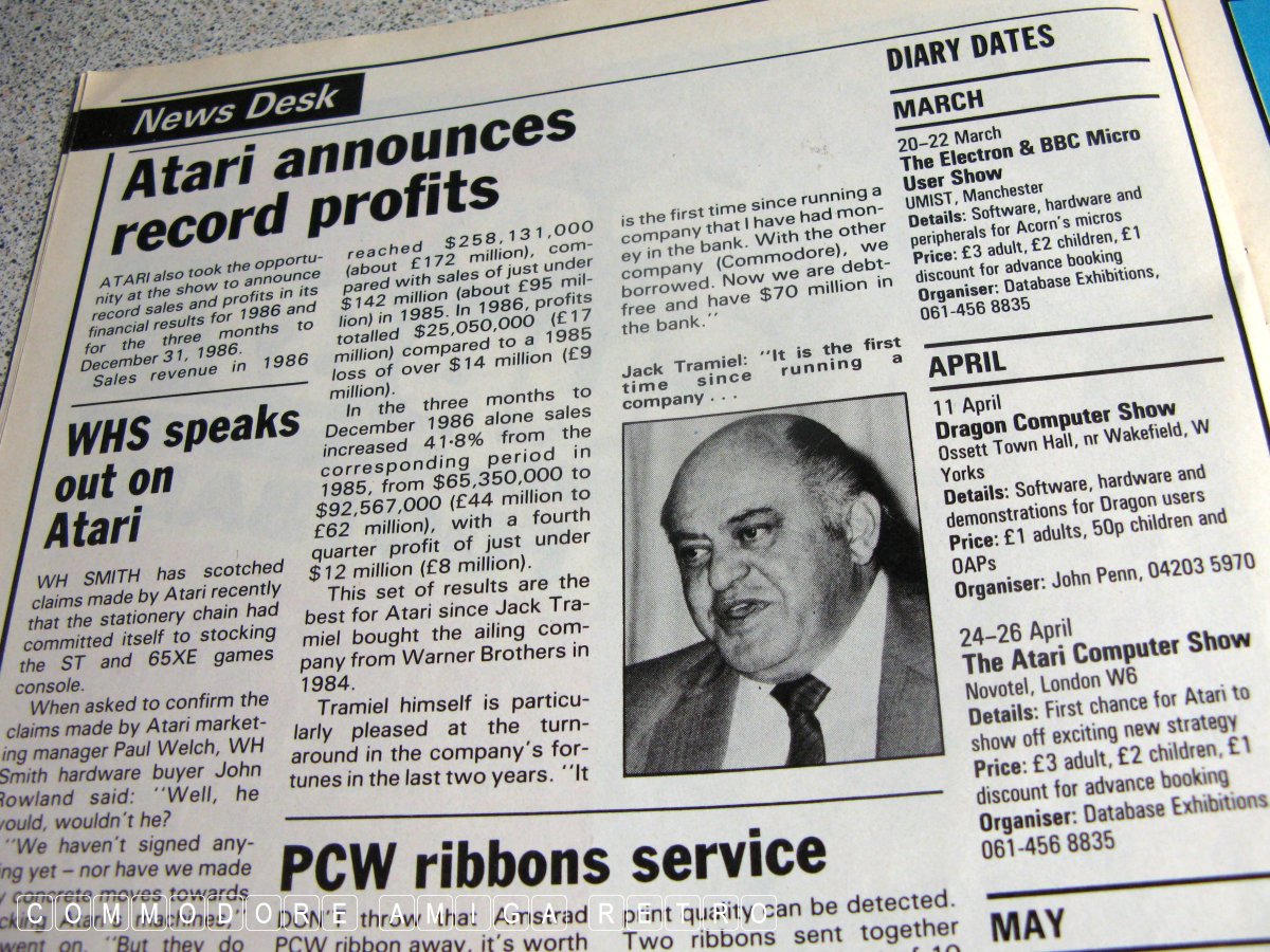 the Amiga 500, Atari posting big profits and Alan Sugar riding