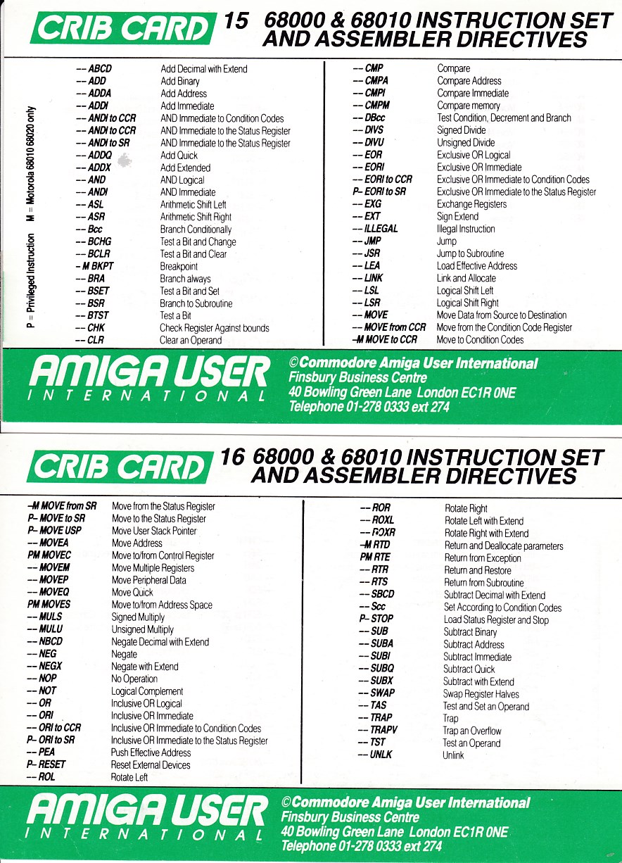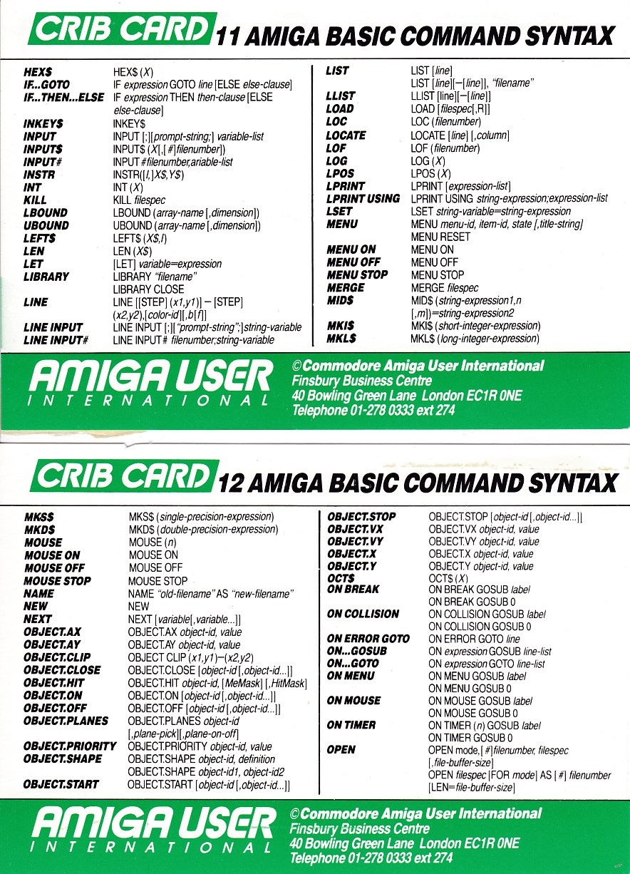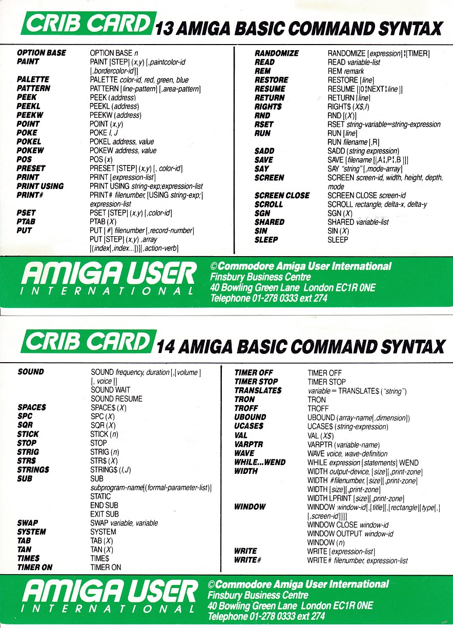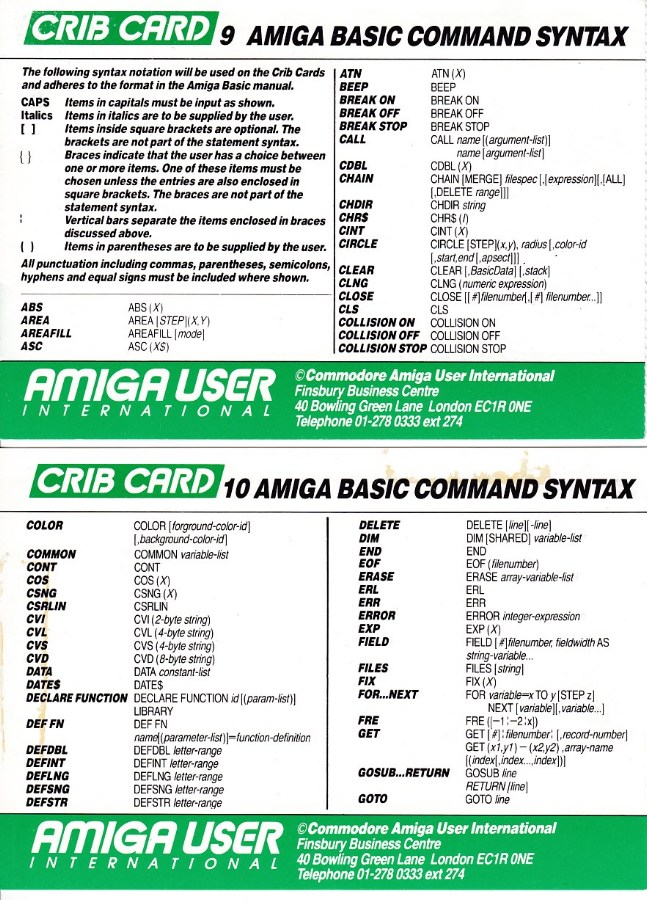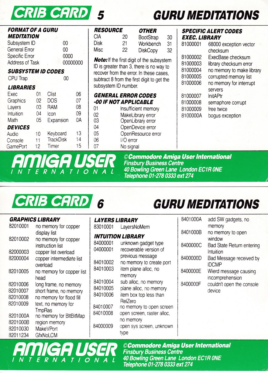 Amiga User International - Crib Cards