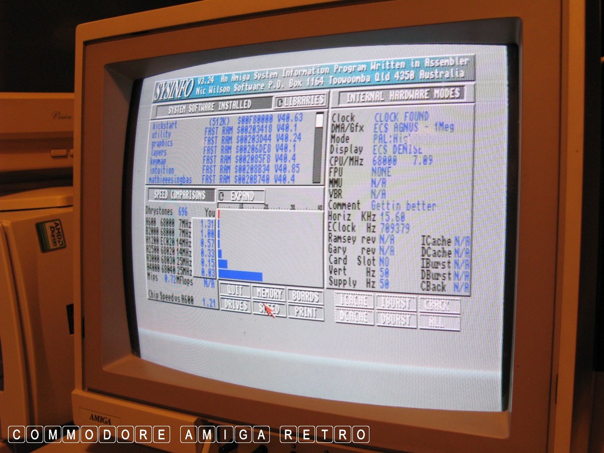 chip. 24 bit Fast RAM can be added using Zorro II expansion